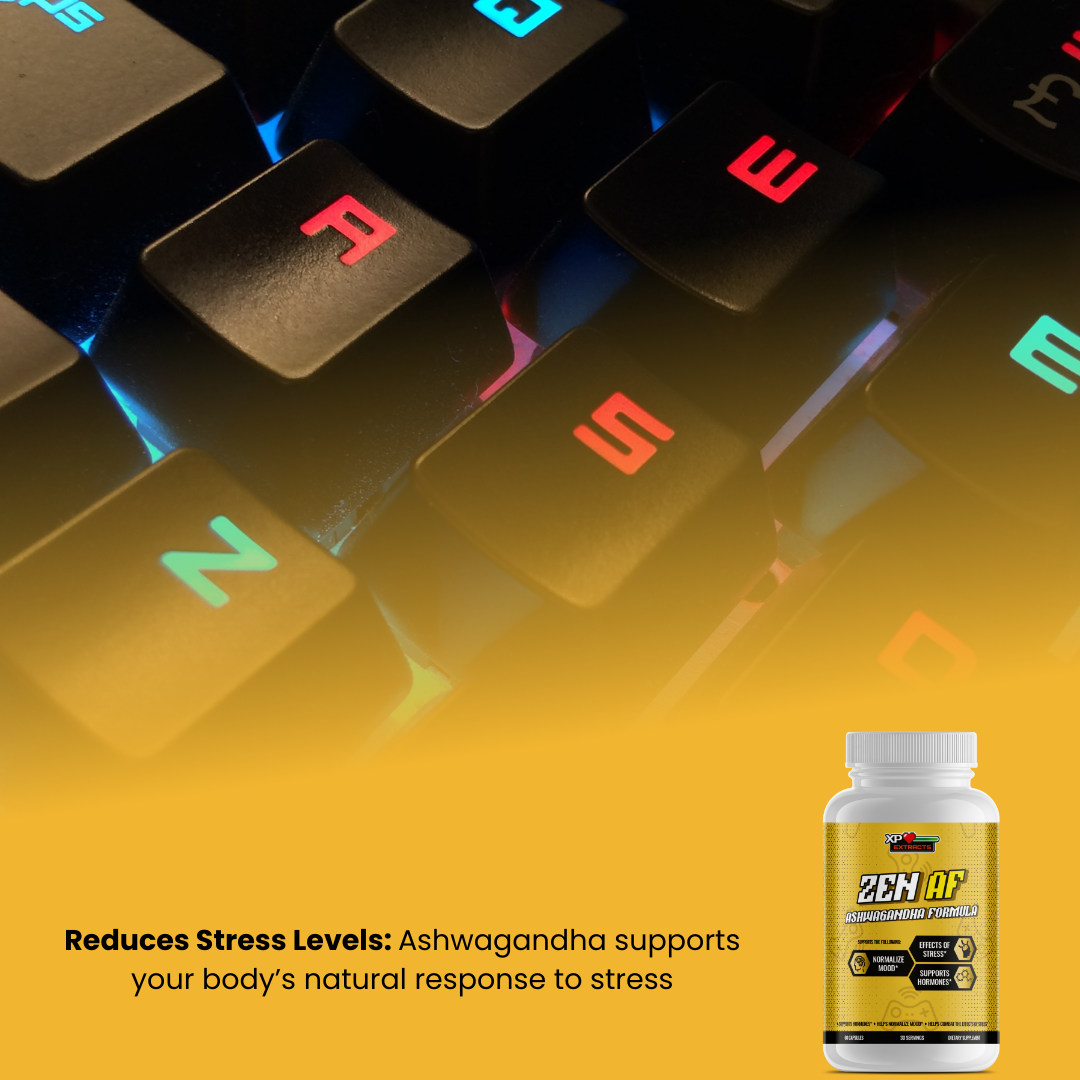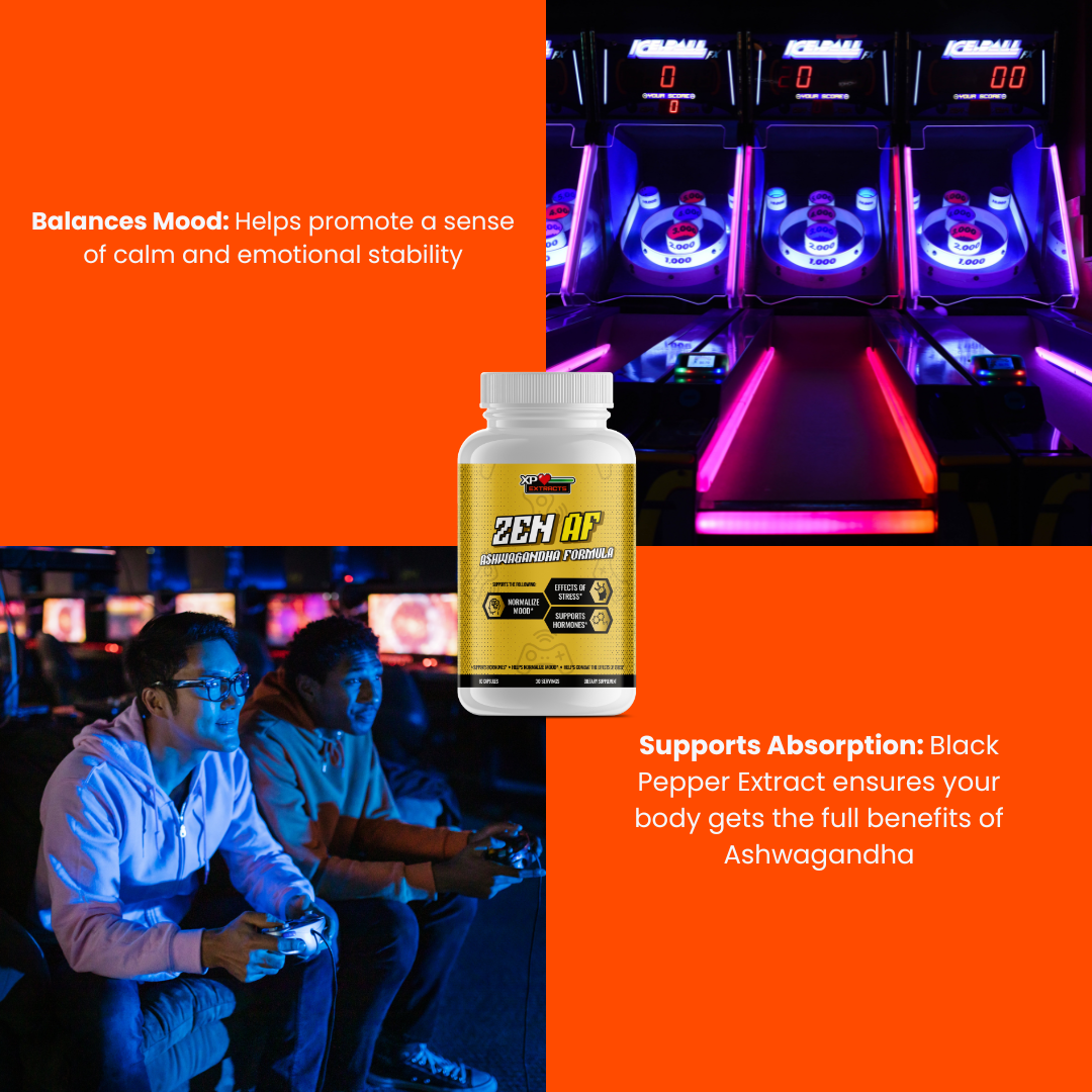 - Struggling to keep your cool during intense gaming or stressful situations? Ashwagandha helps balance your mood, promoting a sense of calm and focus.